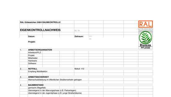 RAL Eigenkontrollnachweis (EKN) für Baumkontrollen