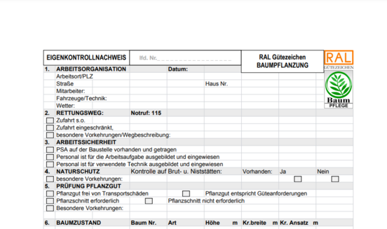 RAL Eigenkontrollnachweis (EKN) für Baumpflanzung
