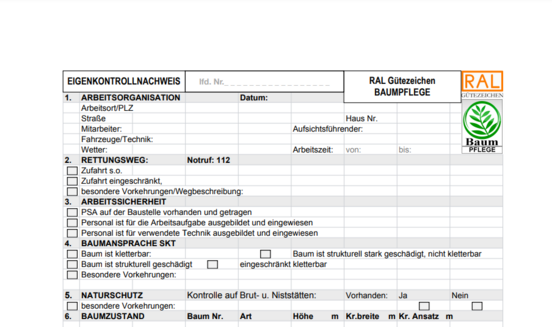 RAL Eigenkontrollnachweis (EKN) für Baumpflege